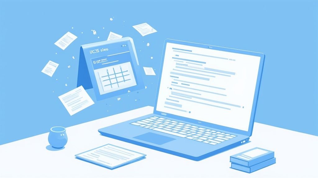 As you're testing, keep an eye out for the usual suspects: incorrect event times (almost always a time zone issue), missing descriptions, or the file flat-out refusing to import. If you're running into persistent issues, especially with Google Calendar, our guide on how Google Calendar handles ICS files is a great place to dig deeper.