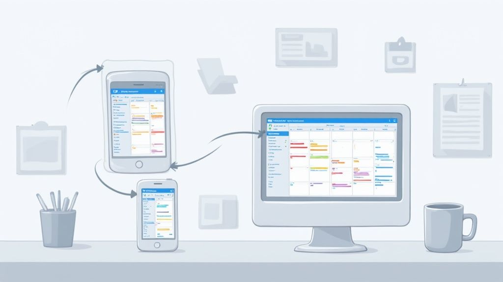This automated approach often uses advanced programming interfaces to connect the calendars directly. For the tech-curious, you can learn more about how an API for events can forge these powerful connections. By creating this direct link, these services ensure that every new event, edit, or cancellation is captured and mirrored almost instantly. You finally get a single source of truth for your entire schedule.
