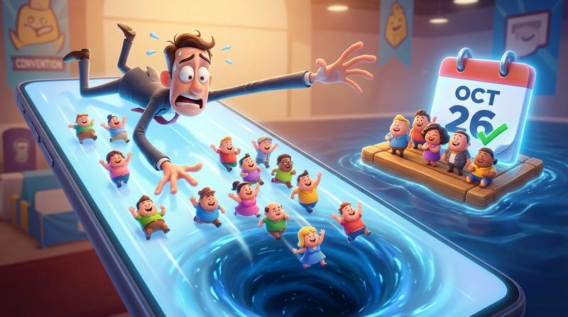 Der Moment, in dem dein Teilnehmer vergisst, dass er sich angemeldet hat (und wie du das verhinderst)Kalender-Speicherungen schaffen Verbindlichkeit, während E-Mail-Bestätigungen nur Unordnung schaffen.