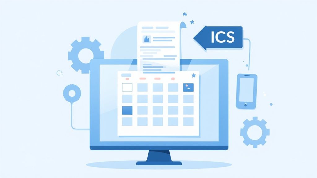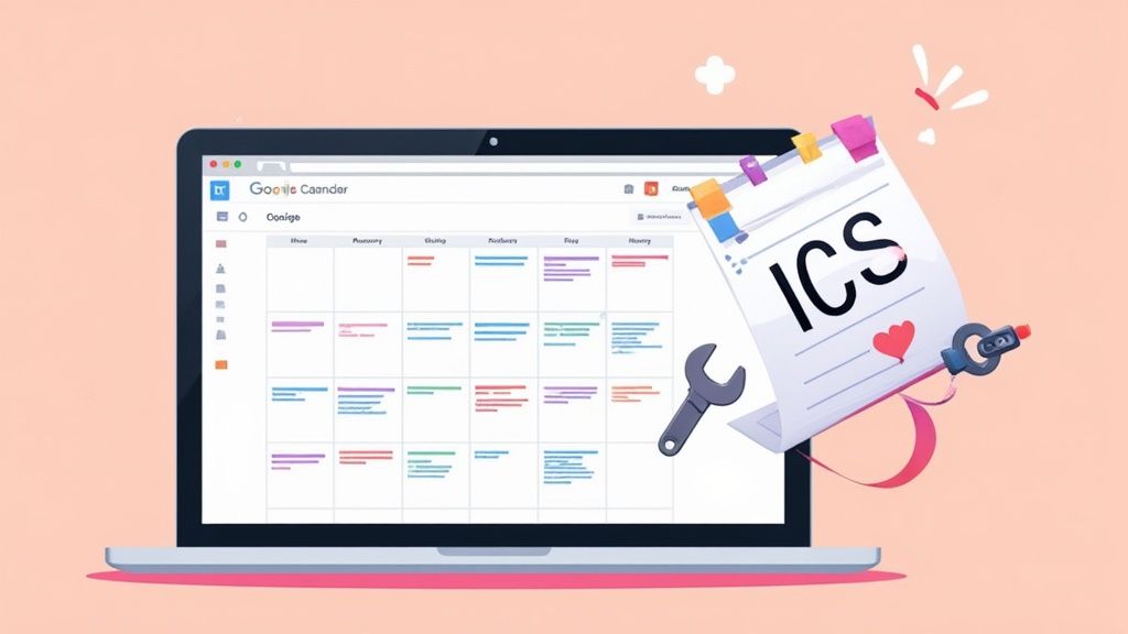 Meistere die ICS-Datei für Google CalendarDein definitiver Leitfaden zur ICS-Datei für Google Calendar. Lerne, wie du Events importierst, erstellst und automatisch teilst, um deinen digitalen Terminplan zu meistern.