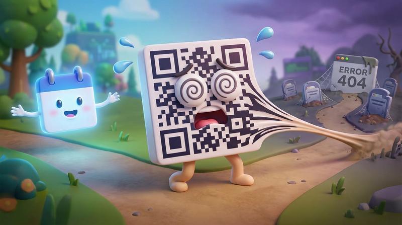Der QR-Code auf deinem Event-Poster ist wahrscheinlich kaputt (Das passiert nach dem Scan)Überspringe Landingpages. Sende QR-Codes direkt zum Kalenderspeichern.